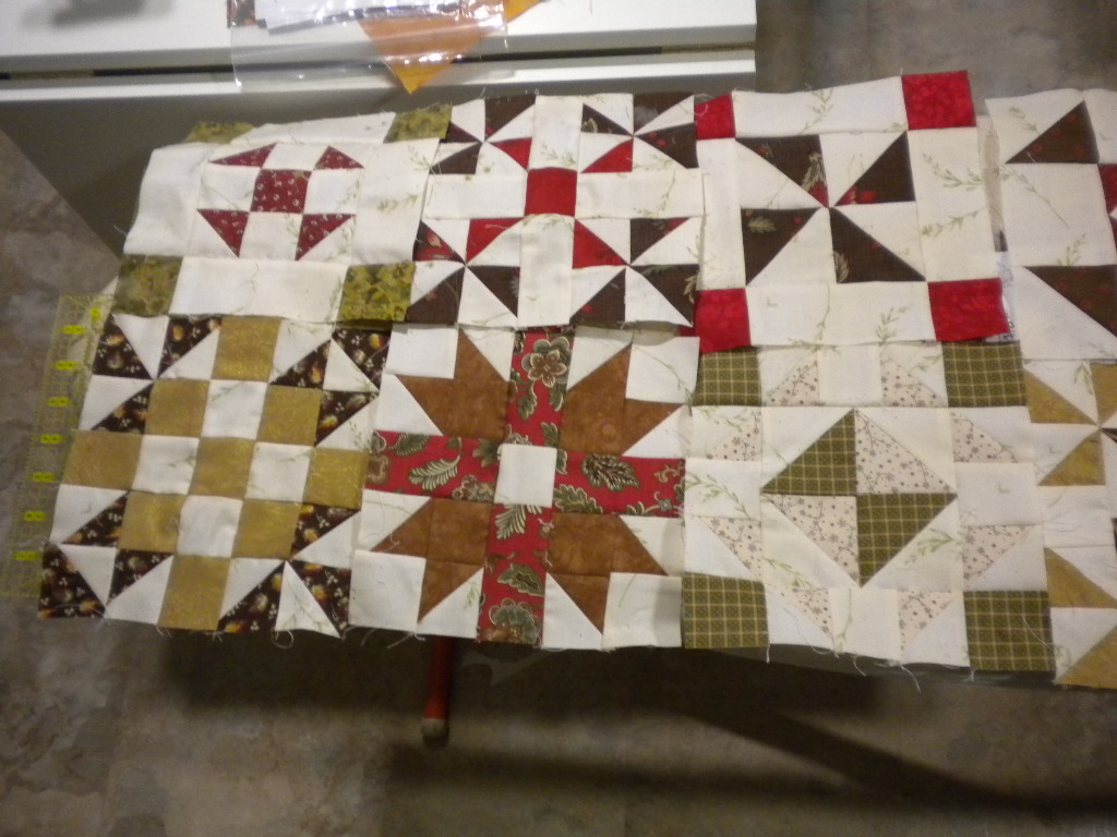 My friend Chose the Red and brown color way. She had trouble keeping up, so I have been making her blocks for her. Here are the last 8.