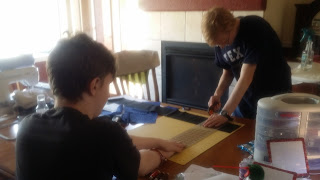 Chris was meticulous in his measuring and cutting. If was a quarter inch short he cut another piece.  Andrew was not confident enough to use the cutter, so he held the opposite end the of the ruler to keep it lined up straight.